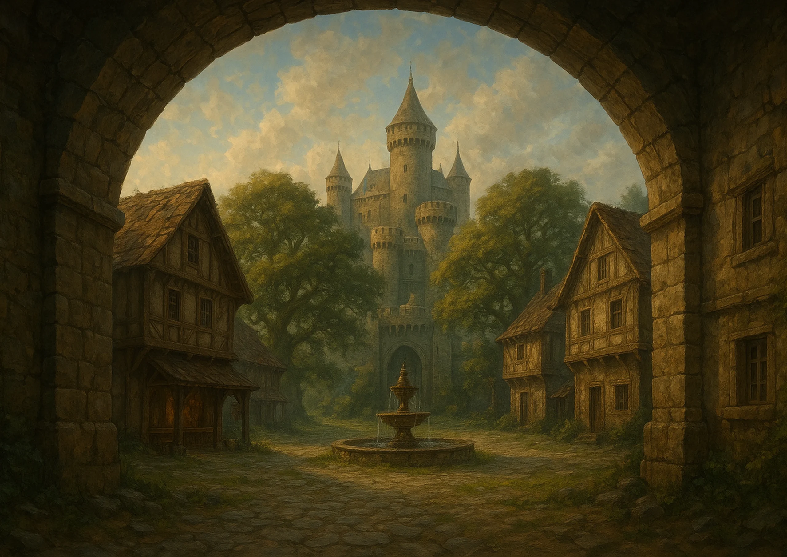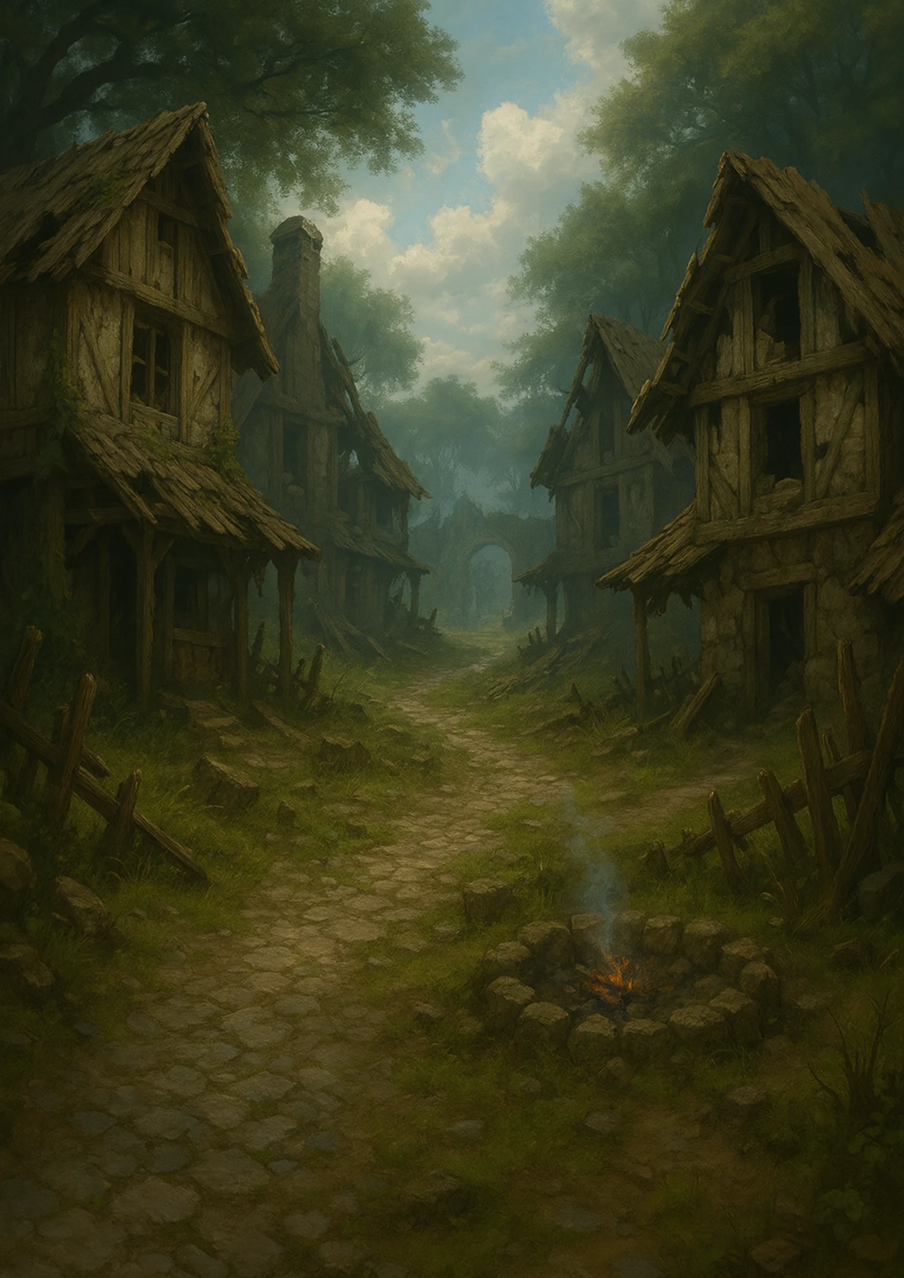 Kasztel Czterech Dębów, jak głosiły zapiski w starych księgach, był niegdyś miejscem znaczącym — dziś wymagał jednak remontu, a okalająca go wieś Wilcze Łęgi leżała w ruinie. Mimo to w tym miejscu Ambraxas dostrzegł przyszłość: dom, bastion sprawiedliwości, i nowy początek. Miasto oddelegowało kilku strażników do pomocy w renowacji i obronie wsi przed goblińskimi watahami, które raz po raz zapuszczały się w te tereny.