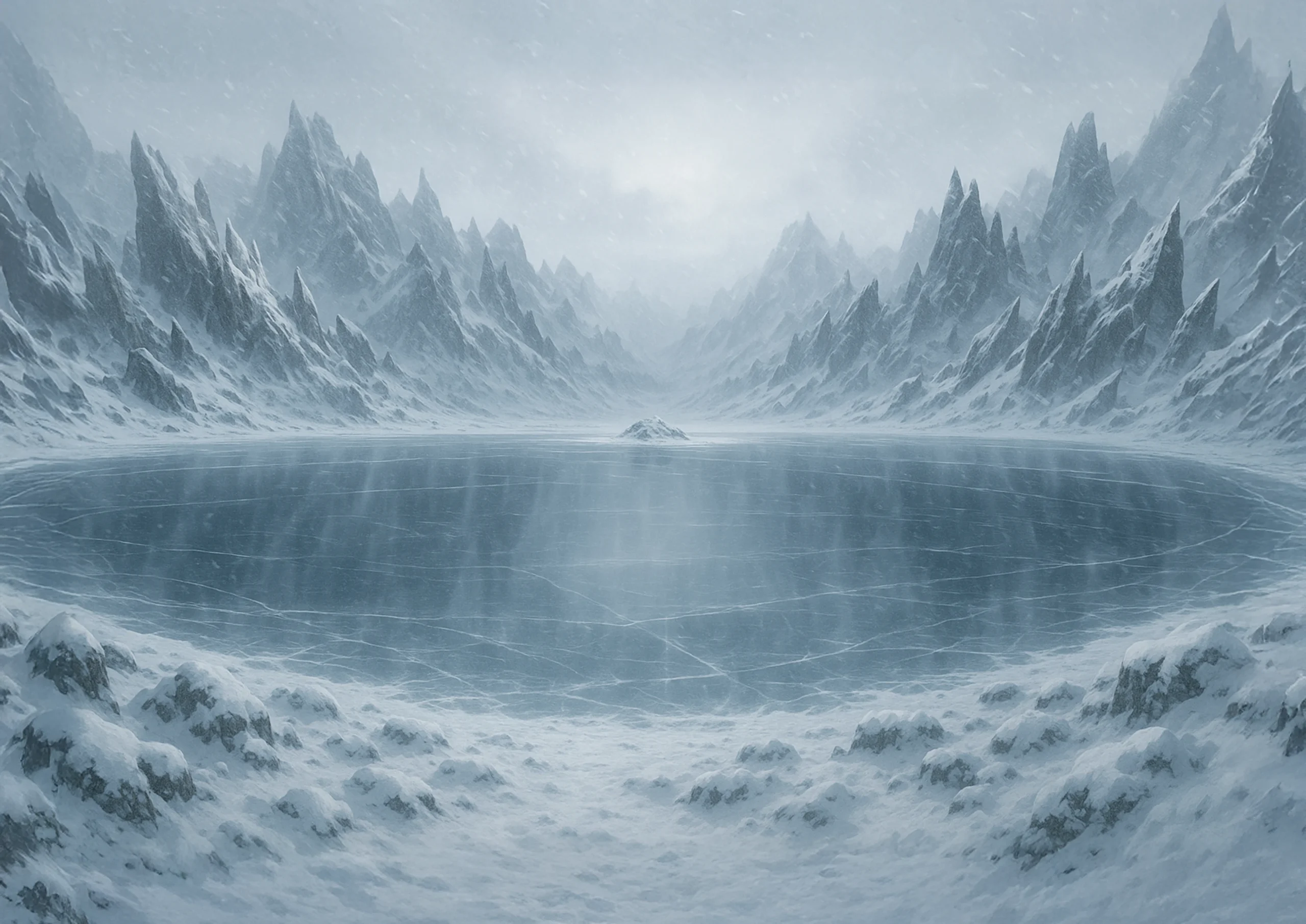 W oddali sylwetka na środku jeziora była jedynym cieniem w martwym, białym świecie. I choć drużyna nie rzucała odbić, ona — owszem. Jej odbicie migotało pod powierzchnią lodu, jakby znajdowało się nie na powierzchni, lecz pod nią, jakby było częścią czegoś głębszego, odległego.
