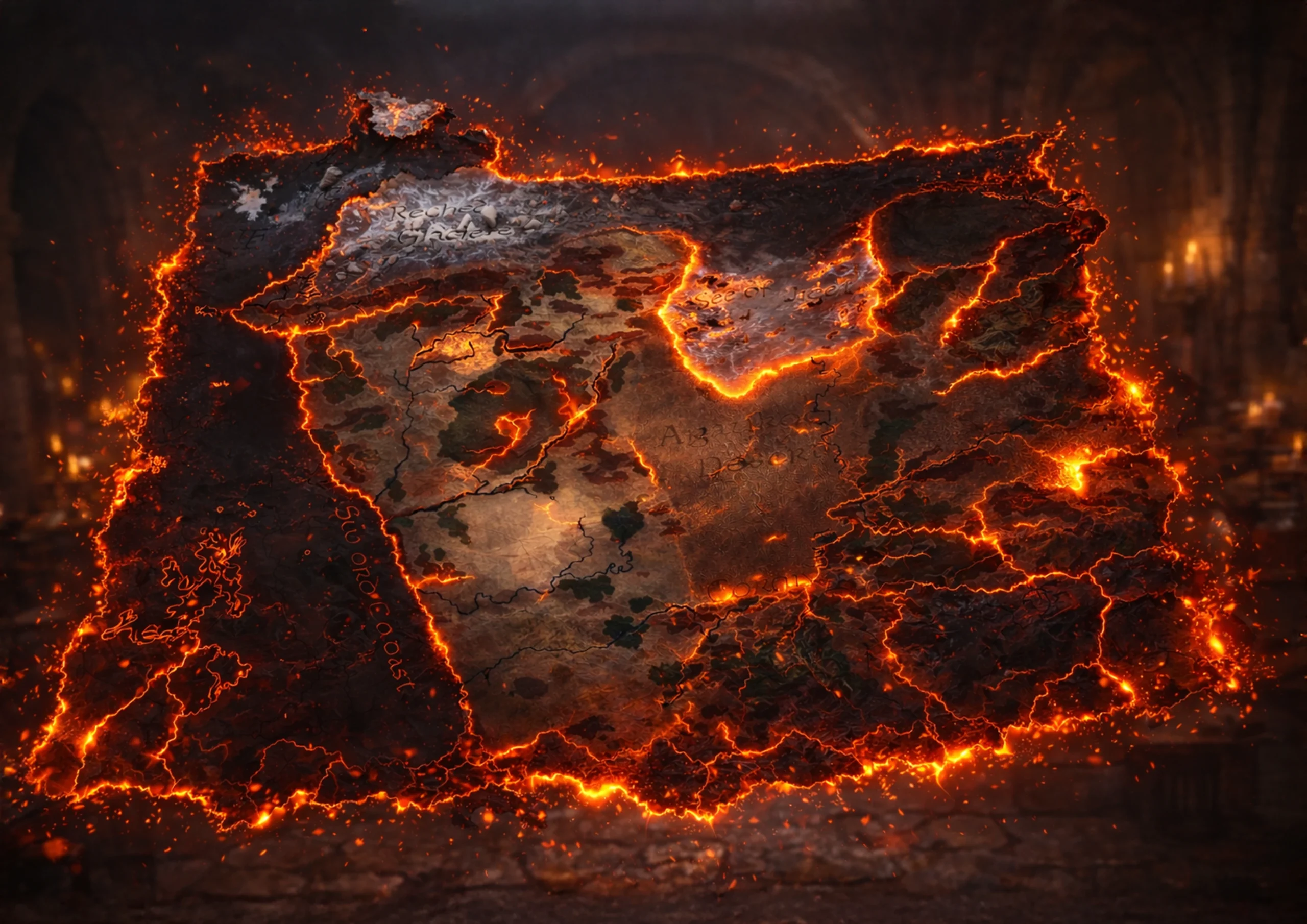 Pstryknął palcami. W płomieniach zawisła gorejąca mapa.