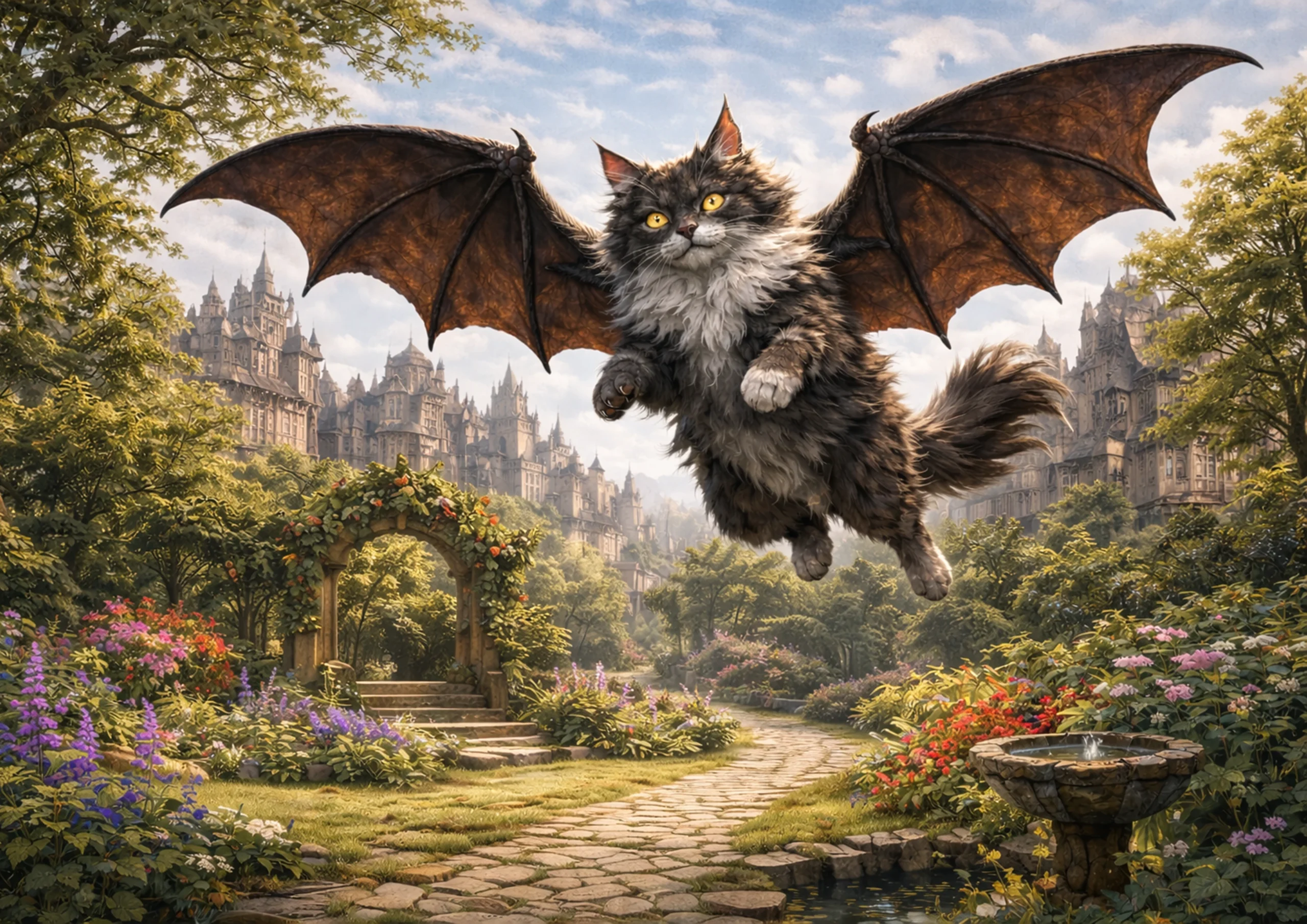 Do Phandalinu dotarli, gdy słońce wciąż stało wysoko na niebie. Przy bramach Ambraxas uniósł dłoń i odwołał swojego gryfa. Stworzenie zadrżało, a jego ciało, utkane z czystej boskiej energii, zaczęło się rozpływać. Skrzydła rozsypały się w smugach światła, sylwetka zbladła i po chwili gryf zniknął całkowicie, nie pozostawiając po sobie żadnego śladu.
