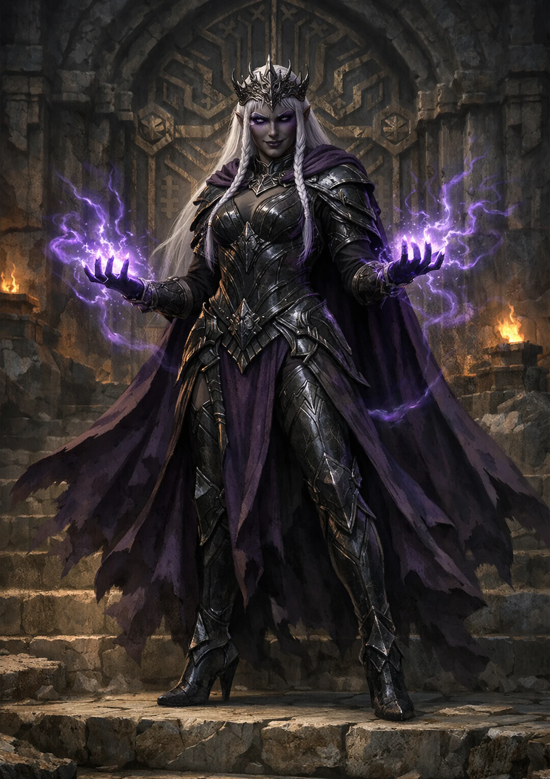 Drowka uniosła dłonie ku górze. Jej palce rozjarzyły się mroczną energią.