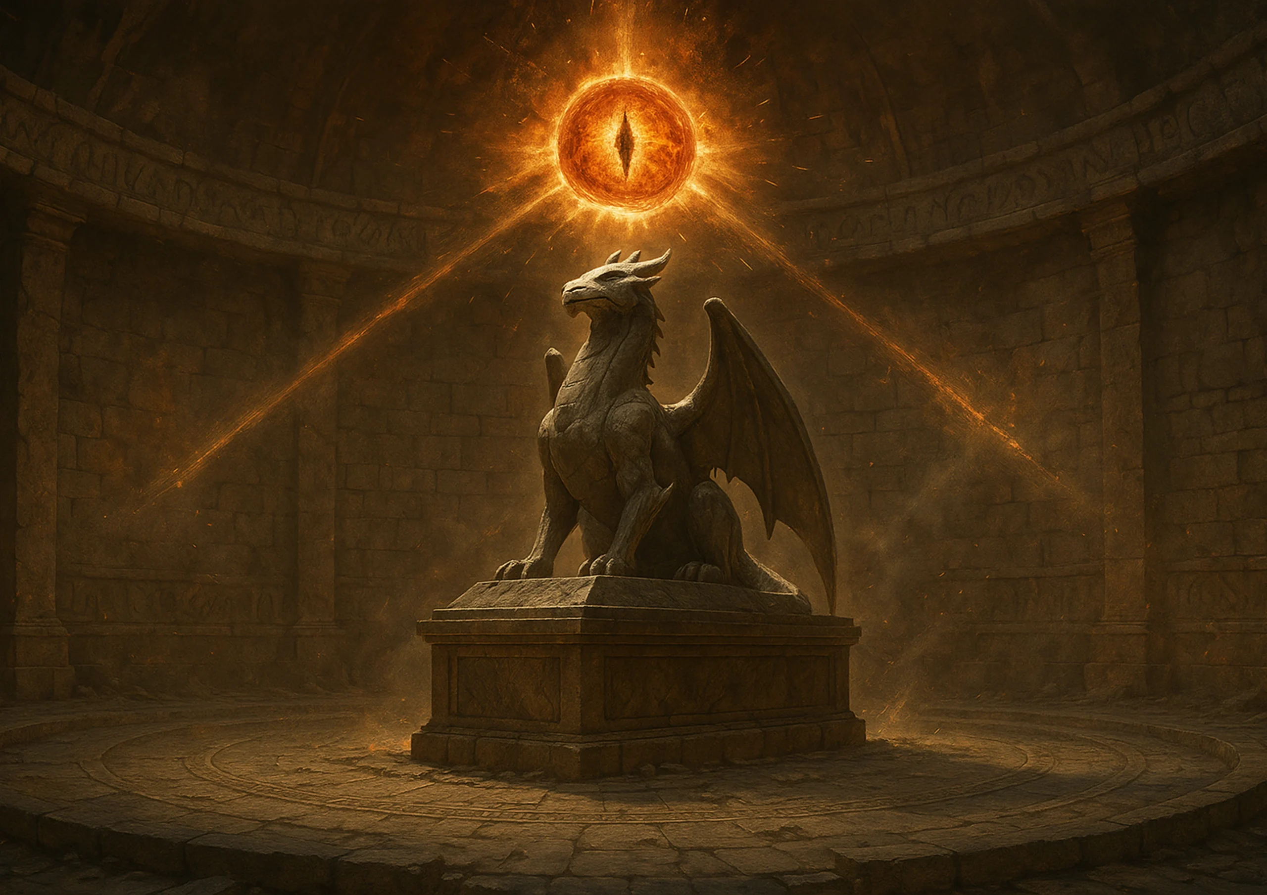Kolejne drzwi otworzyły się na okrągłą komnatę, na środku której spoczywał sarkofag w kształcie leżącego smoka. 30 stóp nad nim unosiła się świetlista kula, przypominająca smocze oko — prawdopodobnie cząstka duszy Vartraxa, której szukali i źródło spaczenia.