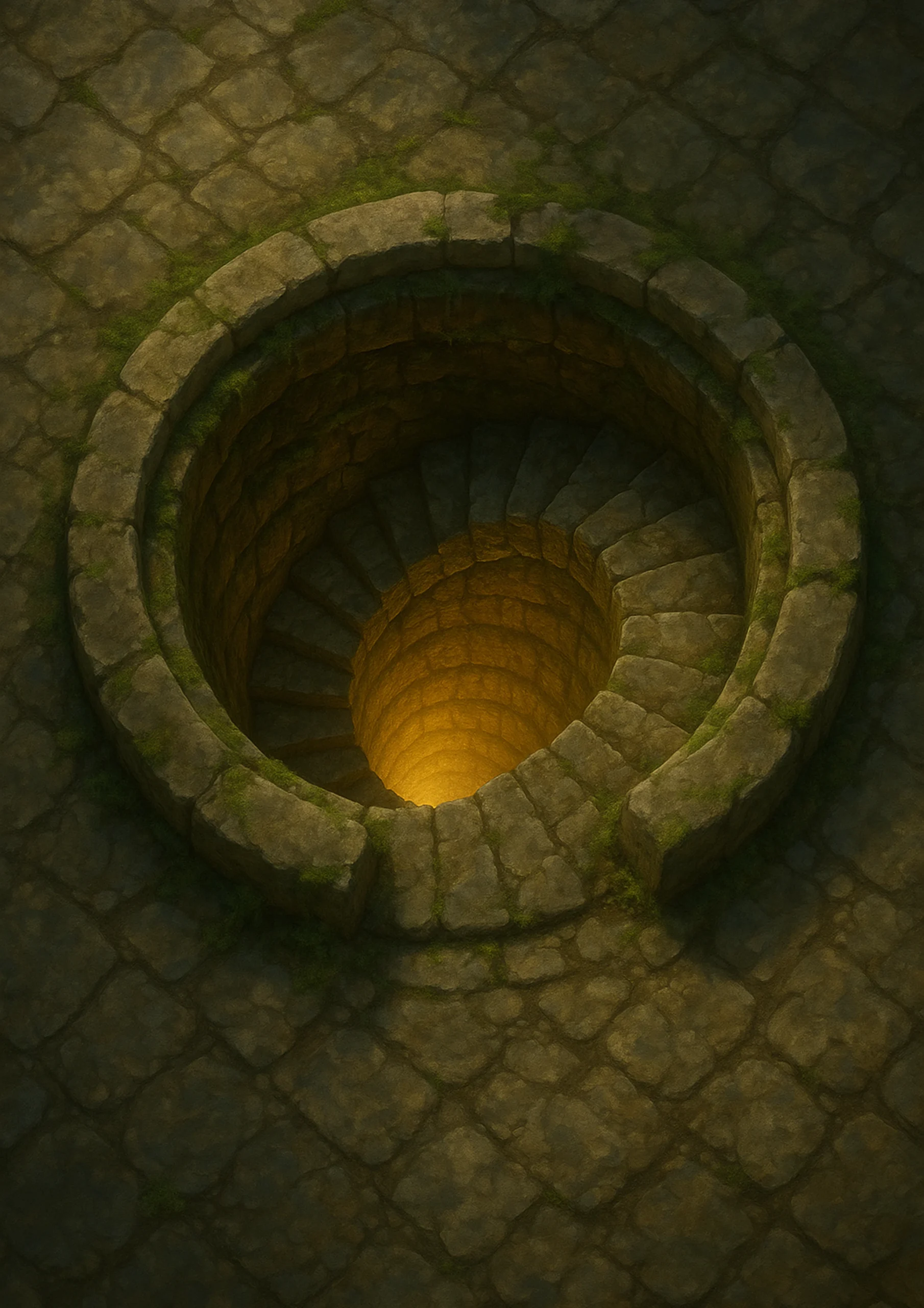 Zdesperowany usiadł na schodach kasztelu, rozmyślając. Komnata musiała mieć setki, jeśli nie tysiące lat. Jeśli wejście jest tutaj musiało znajdować się w najstarszym miejscu lub budynku w kasztelu. Przypomniał sobie jak miejscowi wspomnieli, że fontanna istniała tu zanim wybudowano inne budynki.
