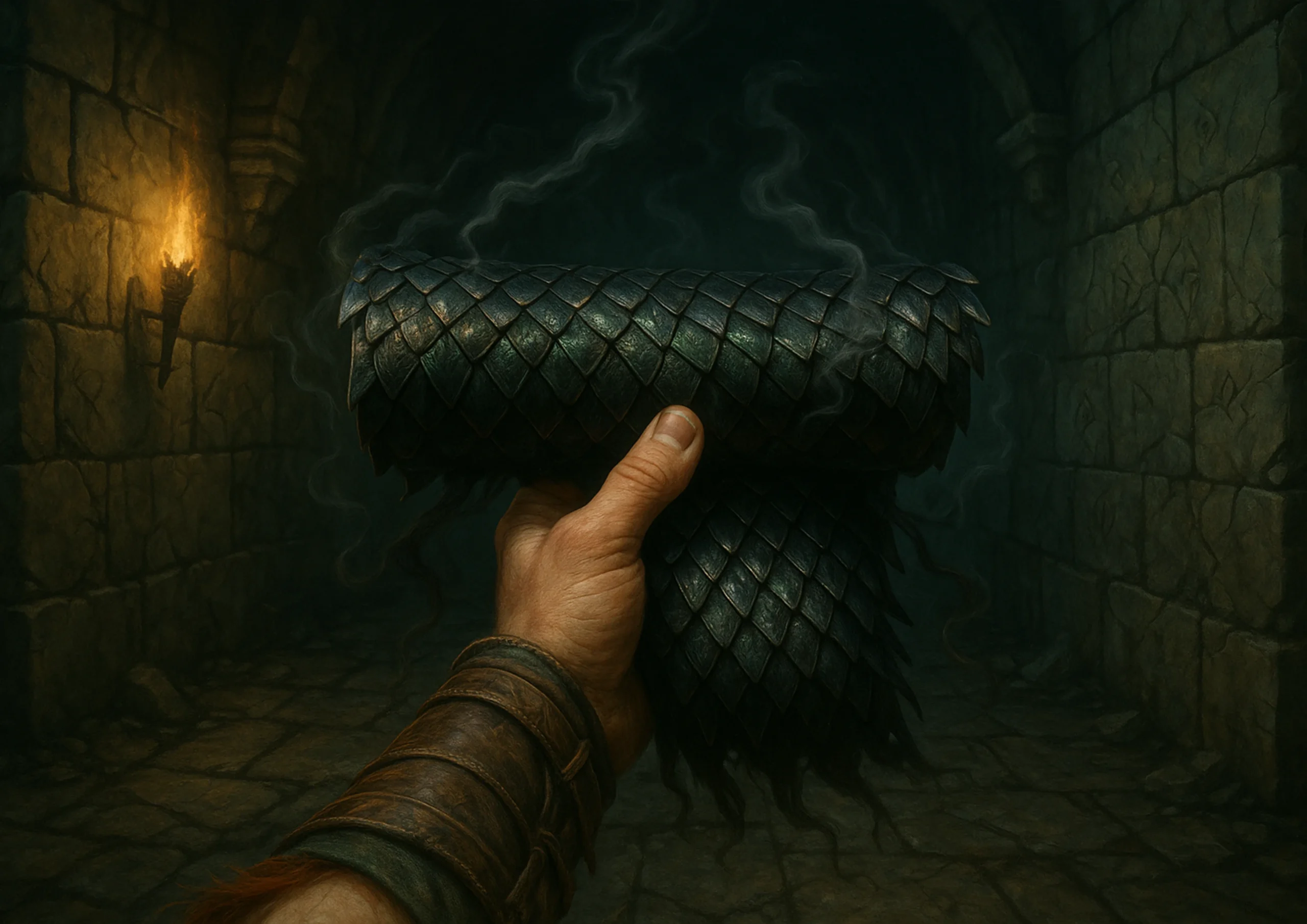 Ponadto Hilda natrafiła na zwój wykonany z czarnego pergaminu przypominającego łuskę czarnego smoka. Gdy spróbowała go otworzyć, została zaatakowana przez potężną magię — przypominającą oddech czarnego smoka — której nie była w stanie się oprzeć. Silny ból psychiczny zmusił ją do natychmiastowego zamknięcia zwoju. Podobny los spotkał Ambraxasa, gdy sam podjął próbę otwarcia. Ostatecznie bohaterowie postanowili zachować zwój i poszukać o nim więcej informacji po zakończeniu misji.